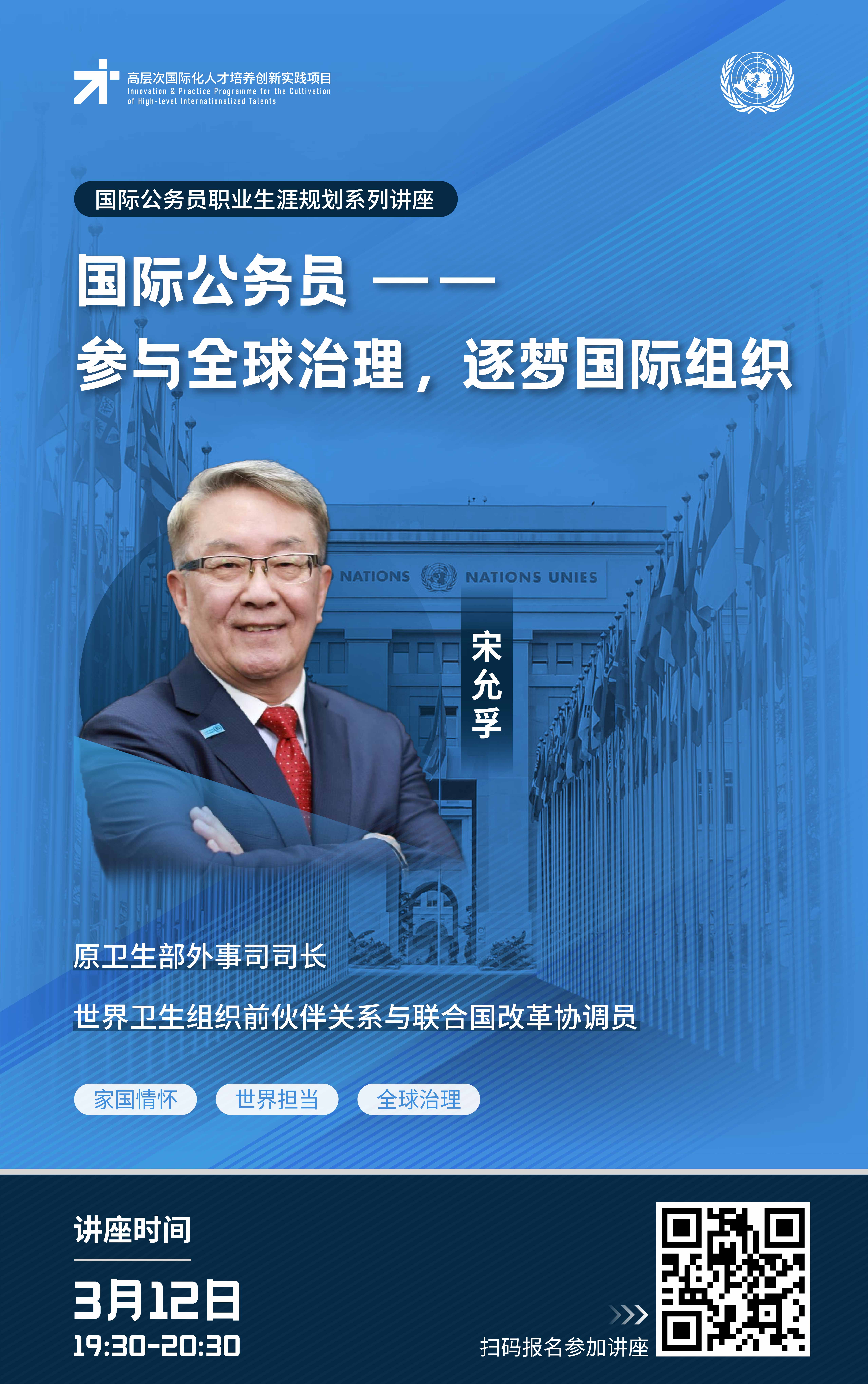 二、内容简介:40年的外事工作生涯,宋允孚先生的人生经历紧随国家的发展,见证了我国外交事业的蓬勃发展。在讲座中,他将与我们分享新的时代背景下,对国际组织工作的新认识、新思考。