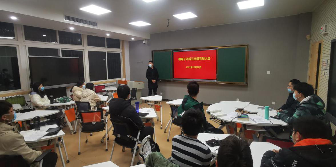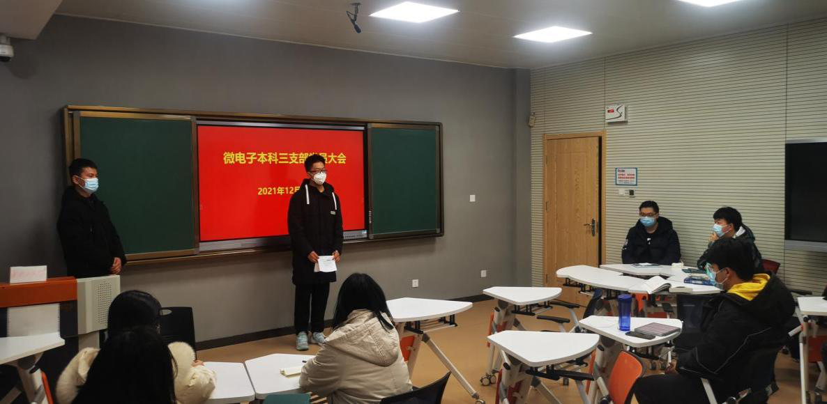 本科三支部于2021年12月22日晚,在长安校区教学东楼JB107召开接收预备党员与预备党员转正大会,支部全体党员、预备党员与发展对象参加,会议由支部书记黄佛保老师主持。