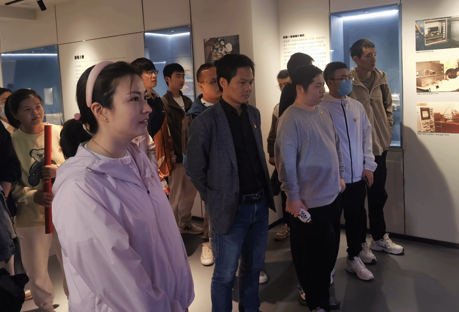 航天精神教育基地的展馆内设“缘起”、“奠基”、“成就”、“初心”、“追梦”五个展厅。在工作人员专业的讲解下,学院一行人员仔细倾听了771所的创立背景、发展历程、科研成就、拼搏精神和创新理念等,详细了解771所自1965年创建以来承担的多项重点工程型号的计算机、集成电路、混合集成电路配套任务,以及参加的一大批国家重点工程发射任务,包括“神舟”系列飞船、“嫦娥”系列探月工程、“天宫”系列空间站、“北斗”系列导航系统等。认真学习了展厅里展示的全国劳动模范、“百位感动中国人物”、“最美奋斗者”罗健夫,中国半导体专业著名专家、俄罗斯外籍院士黄敞,中科院院士沈天慧、沈绪榜等一大批科技精英和模范人物的先进事迹,感悟771所获得 “国家科技进步特等奖”、“国防科技进步特等奖”、“全国五一劳动奖状”、“全国文明单位”等大批国家级、省部级荣誉奖励背后的故事与艰辛,深刻感受771所为国家重点工程和航天事业做出的杰出贡献。