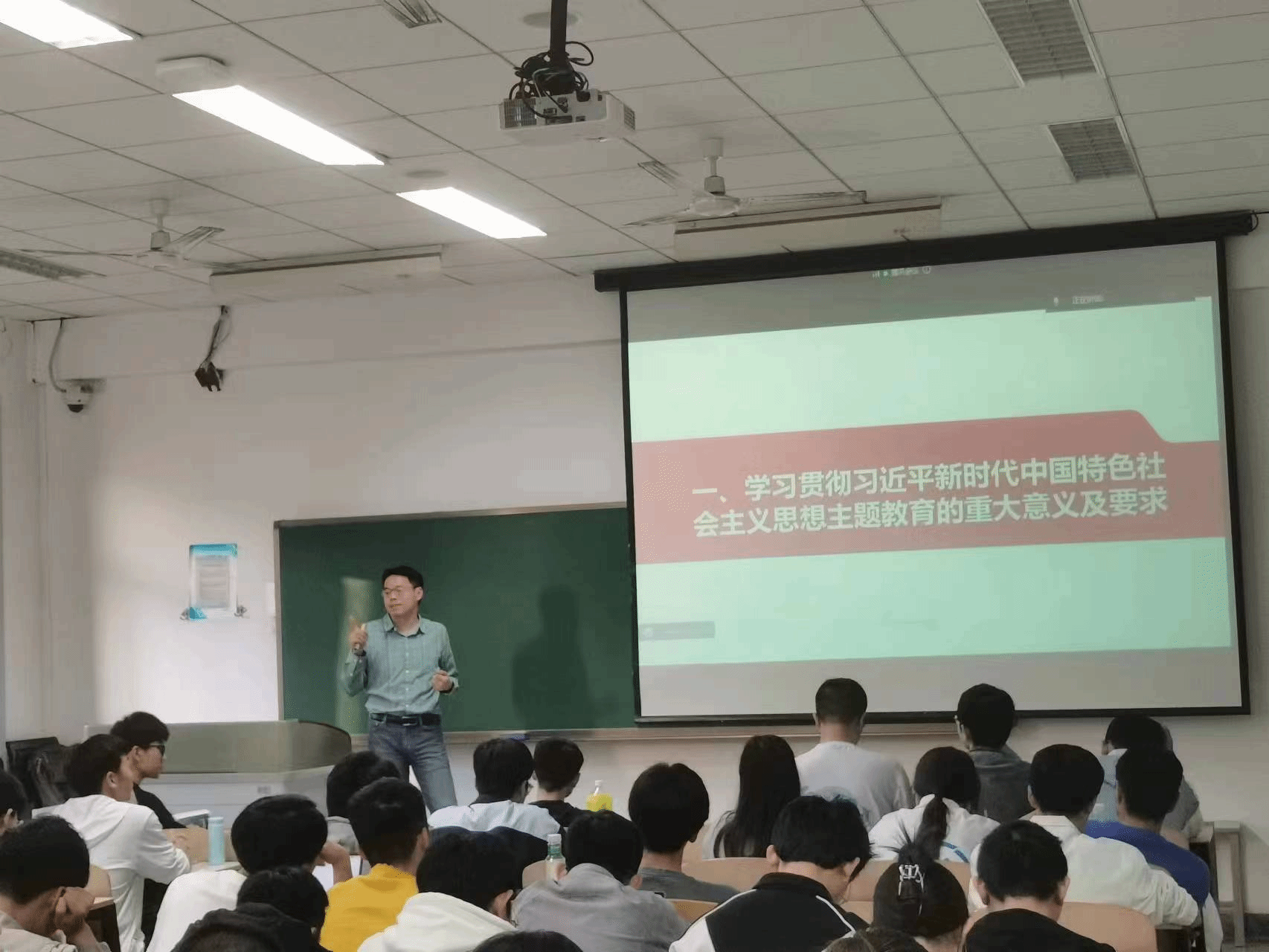 课程进一步深入,甘雪涛锚定开展主题教育的根本任务,向大家讲述“凝心铸魂筑牢根本、锤炼品格强化忠诚、实干担当促进发展、践行宗旨为民造福、廉洁奉公树立新风”等一系列主题教育的目标,呼吁同学们努力学习,扎实基础,为国家作出贡献。