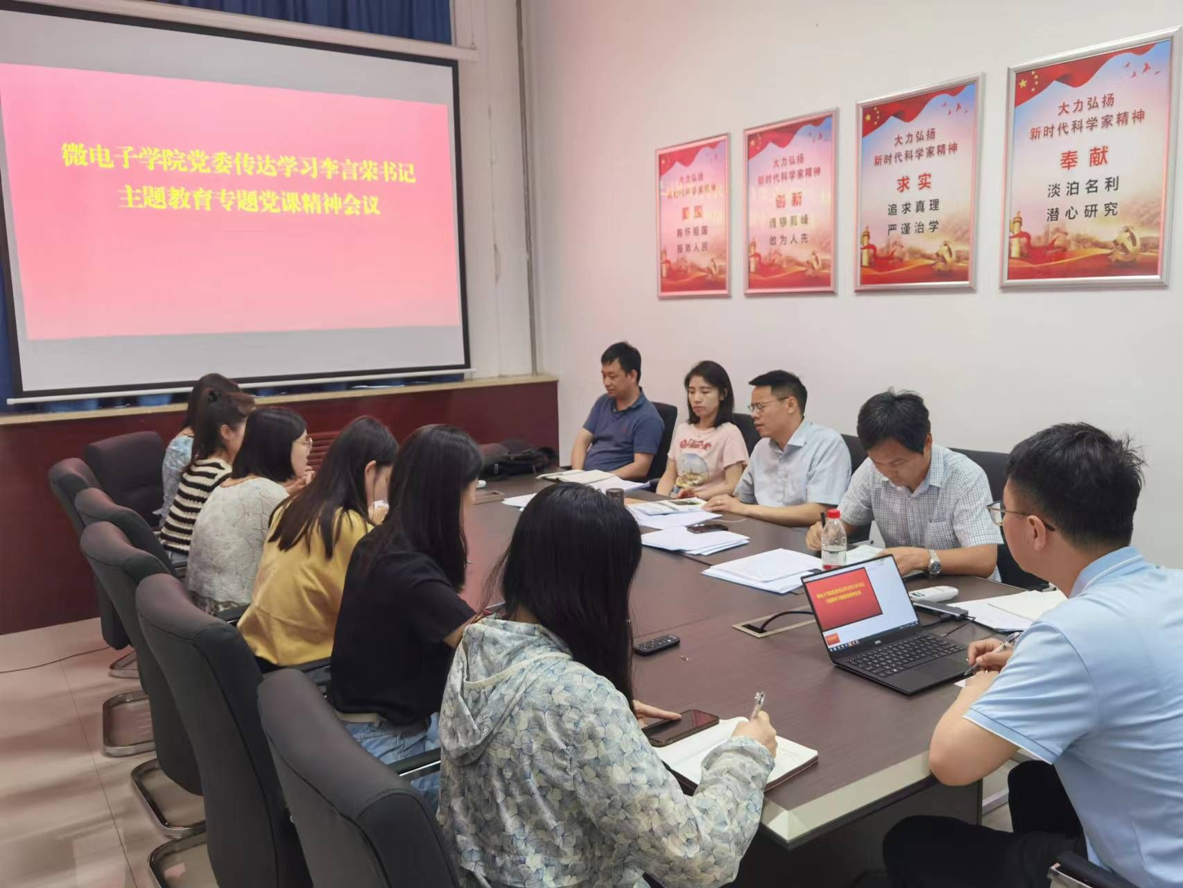 党委召开学习李言荣书记主题教育专题党课精神会议,传达学习李言荣书记在学校学习贯彻习近平新时代中国特色社会主义思想主题教育读书班集中交流会暨专题党课上的讲话精神。学院院领导、各党支部书记、办公室相关人员参加,会议由学院党委书记甘雪涛主持。