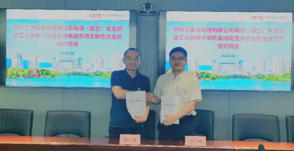 集成电路系师生联合支部与中科芯集成电路有限公司电源(第五)党支部以“踔厉奋发共筑中国‘芯’”为主题,共同开展结对共建活动,签署了支部共建协议,此次活动由中科芯电源(第五)党支部组织委员黄少卿主持。