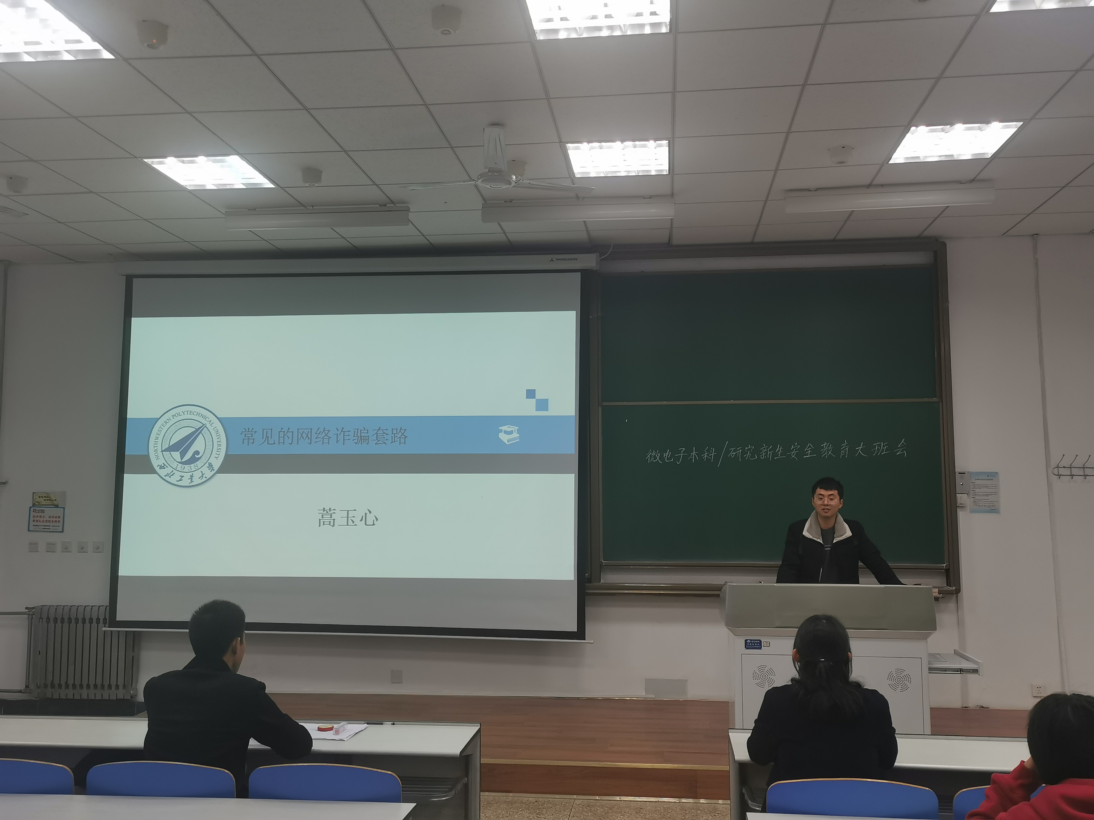 随后,由2020级研究生宣传委员蒿玉心、学习委员徐航为大家分享了“预防网络诈骗”相关知识。通过学长、学姐对常见网络诈骗套路的分析、具体诈骗案例的讲解、以及遭受诈骗时应该采取的措施,与会同学纷纷表示今后一定会提高安全防护意识,不让犯罪份子有机可乘。