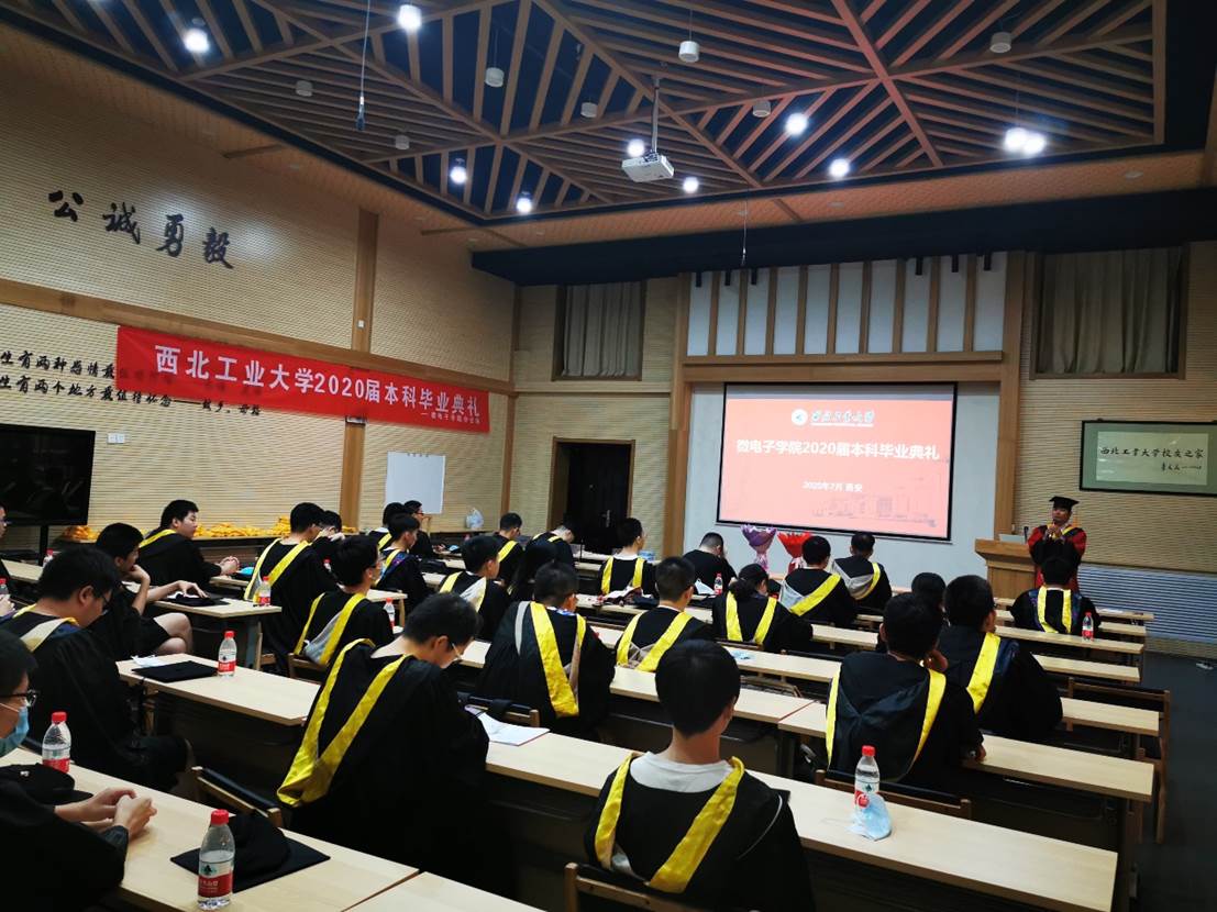 2020届本科毕业典礼暨学位授予仪式在友谊校区阶二会议厅举行,祝贺全体微电子本科毕业生圆满完成学业任务,获得学士学位。学院副院长王少熙,党委副书记彭蓉,教师代表马彦昭、毕业班辅导员阴玥和全体本科毕业生参加毕业典礼,辅导员阴玥主持仪式现场。