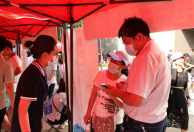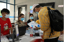在内场的志愿者们主要负责新生的报道工作,帮助新生们领取一卡通、军训物资、防疫用品等。也随时引导新生们顺利走完整个报到流程,使得入学报到流程变得更为快捷便利。