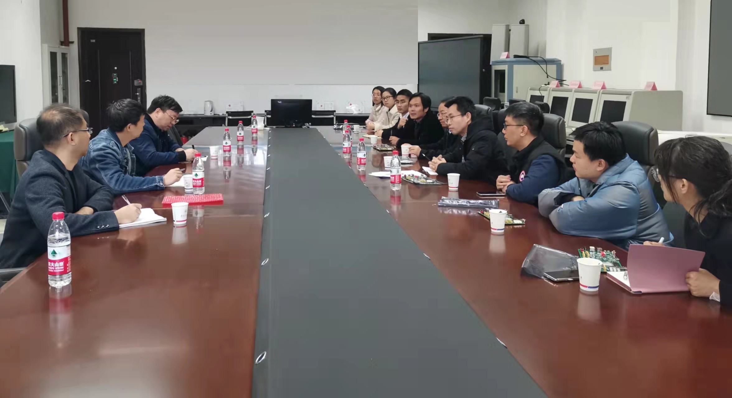 与中科芯联合实验室建设、实验室文化建设、实验教学、课程建设、教材建设、实习实践、暑期实践课程教学以及研究生联合培养、集成电路与智能微系统科研合作以及联合党支部建设等方面进行了深入的讨论并达成了共识。最后,双方就后续学院师生参观中科芯西安分公司进行了商议。