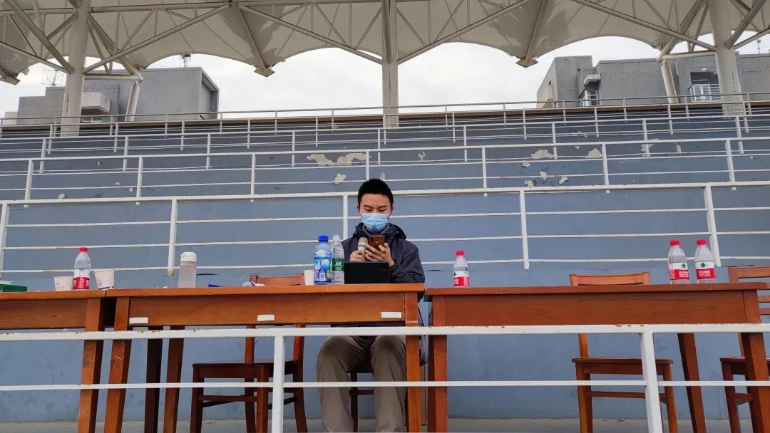 12月27日下午四点,我又一次坐在了核酸检测现场,也就是云天苑操场的主席台上。这是我第二次报名参加广播站的“打倒COVID”志愿者活动,主要负责提醒进场师生注意事项、调剂队伍长度、催促逗留人员离场等任务。与上次晚上9点值班不同,这次是人员极为密集的下午,播报提醒的频次密度更大,对现场的调控精度要求也更高,需要注意力高度集中,不断根据现场情况灵活改动播报词,还是比较累的。毕竟年轻,劳累很好克服,但是俗话说,“雪后寒”,南北通透的主席台形成了持续不断的穿堂风,风力不大,但是持续不断地带走身体上的热量,特别的冷。