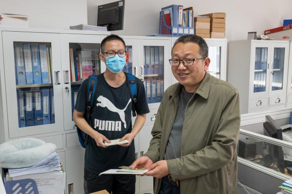 由于来访时仍处于工作时间,老师们在岗位上辛勤工作,同学们不约而同地放轻了脚步,将原本想向老师们表达的万语千言在嘴边浓缩成了一两句简单的感谢。收到明信片的老师们十分感动,与同学亲切交流。就是这样一场特别“安静”的感谢活动,体现出的却是师生双方“相互奔赴”,共同为疫情防控工作贡献自己的一份力量。仪式本身虽被简化,感激之情依旧浓厚。