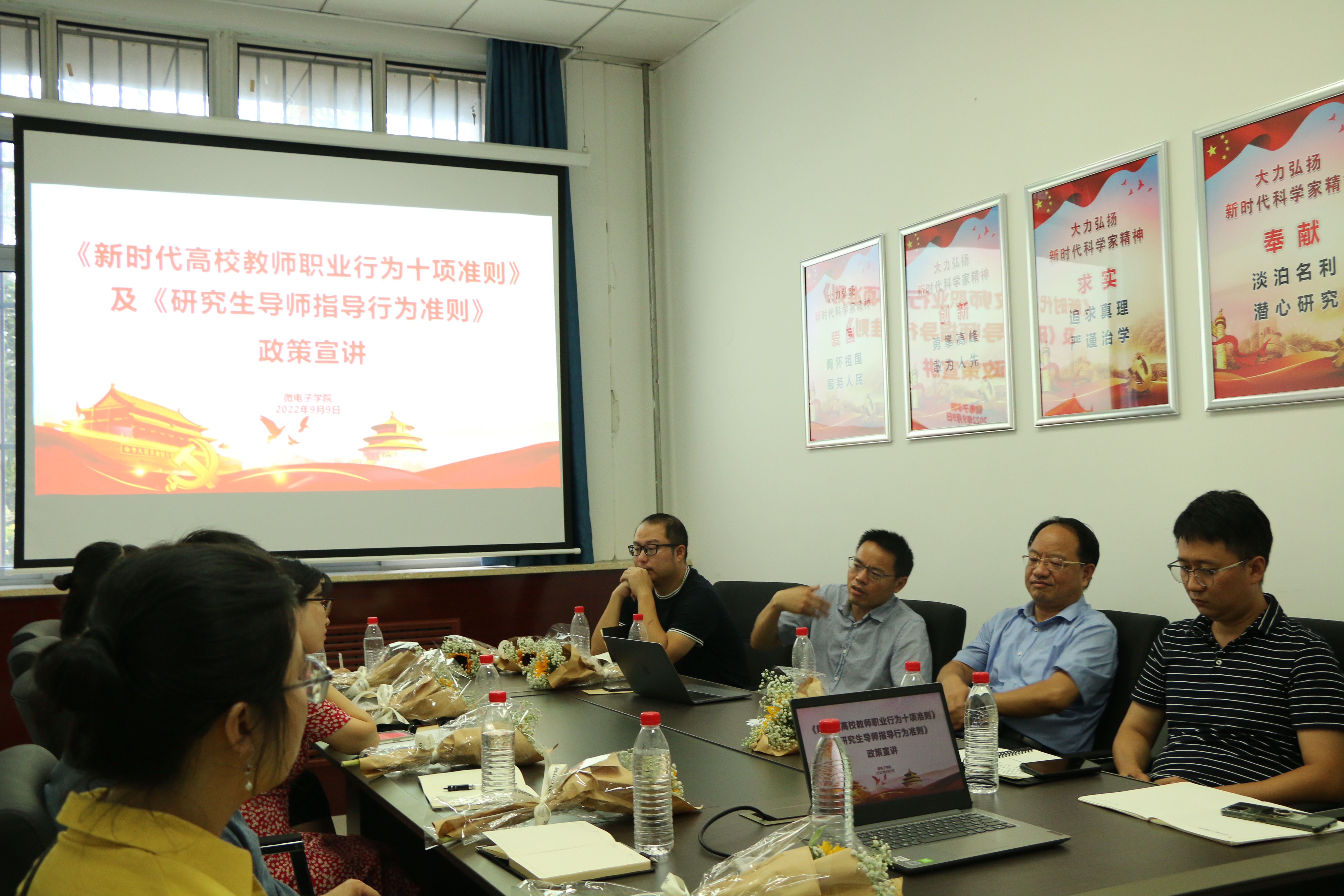 师德师风建设,深入推进师德专题教育,全体参会老师观看了《习近平的教师情》;甘雪涛就《新时代高校教师职业行为十项准则》及《研究生导师指导行为准则》进行了宣讲,强调了师德师风的重要性,希望各位老师引以为戒,知准则、守底线,认真遵守新时代高校教师职业行为十项准则和研究生导师指导行为准则,坚守“立德树人”之道,锤炼“学高为师”之能,铸造“身正为范”之魂,争做“四有”好老师,为学校“双一流”建设做出贡献。