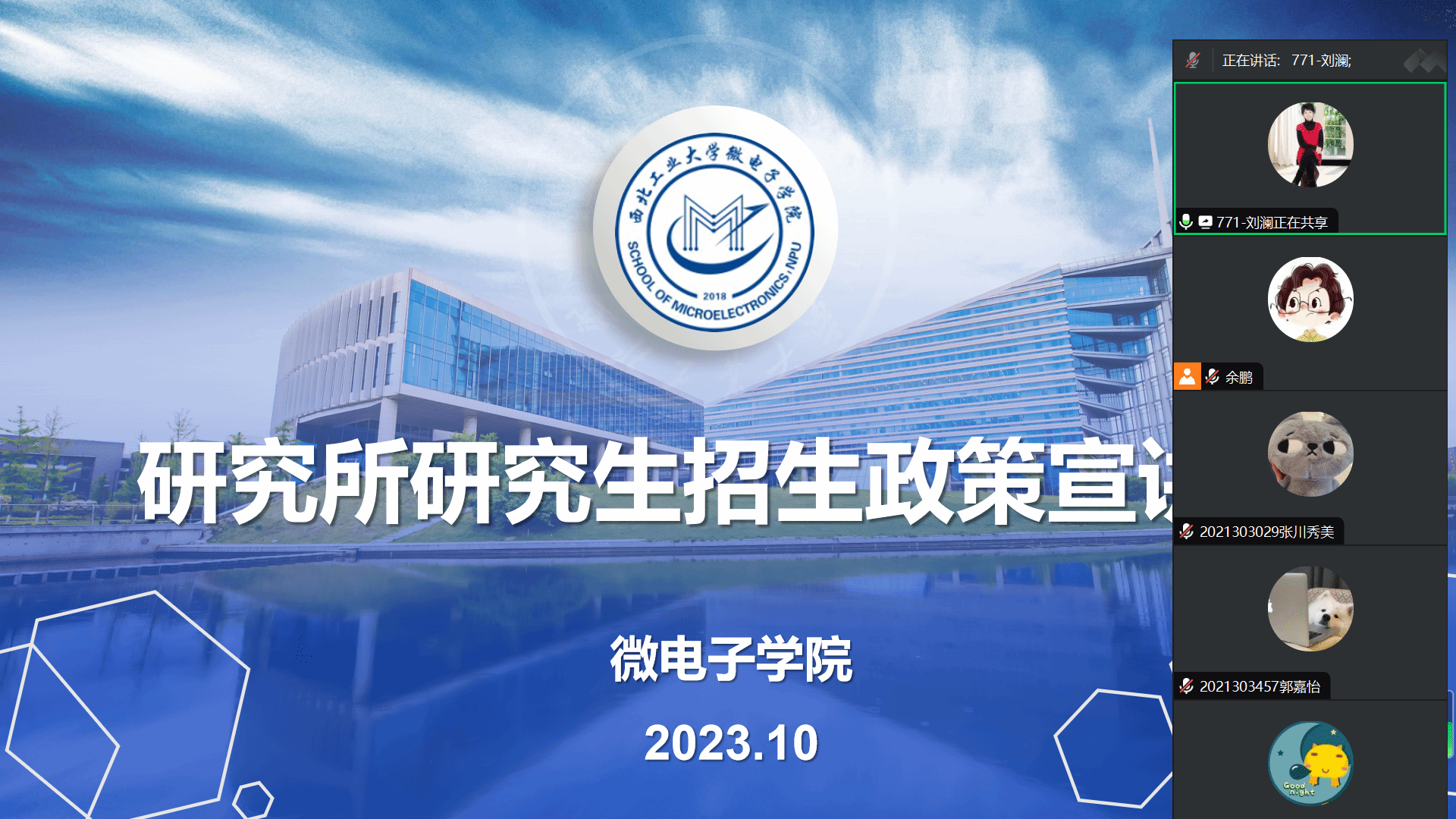 邀请西安微电子技术研究所(771所)、北京微电子技术研究所(772所)面向学院大三、大四学生进行所招研究生政策宣讲。771所人力资源部副部长兼研究生部主任刘澜、772所研究生教育主管王科迪参加会议,会议由学院党委副书记余鹏主持。