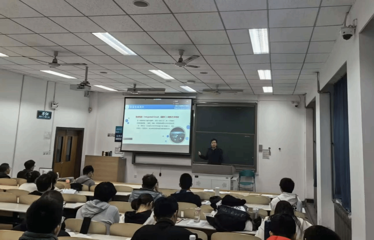 首先,王少熙从当代大学生的现状和定位说起,对同学们提出了几点要求。其次,从制造流程,工艺设备等方面简单介绍了集成电路行业,从产业发展和人才需求等方面着重介绍了我国集成电路产业现状。向同学们提出了关于职业选择和发展的建议,希望同学们能够将个人发展融入国家建设中去,在行业中做出巨大贡献。
