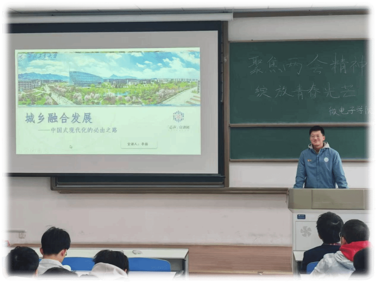 2024级联合芯声宣讲团在长安校区教学东楼D1-203举办“聚焦两会精神,绽放青春光芒”主题团日活动。活动由蒋涵和周墨涵主持,色情直播网站