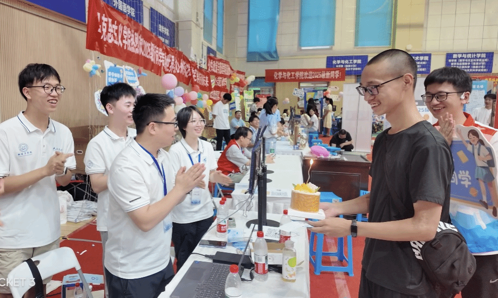 的学科优势与人文底蕴融入其中,新生依次驻足留影,镜头捕捉下的不仅是与学院的初次邂逅,更是一段青春与理想的郑重对话。工作人员还为当日过生日的新生准备了惊喜,共同庆生将迎新活动的热烈氛围推向高潮。