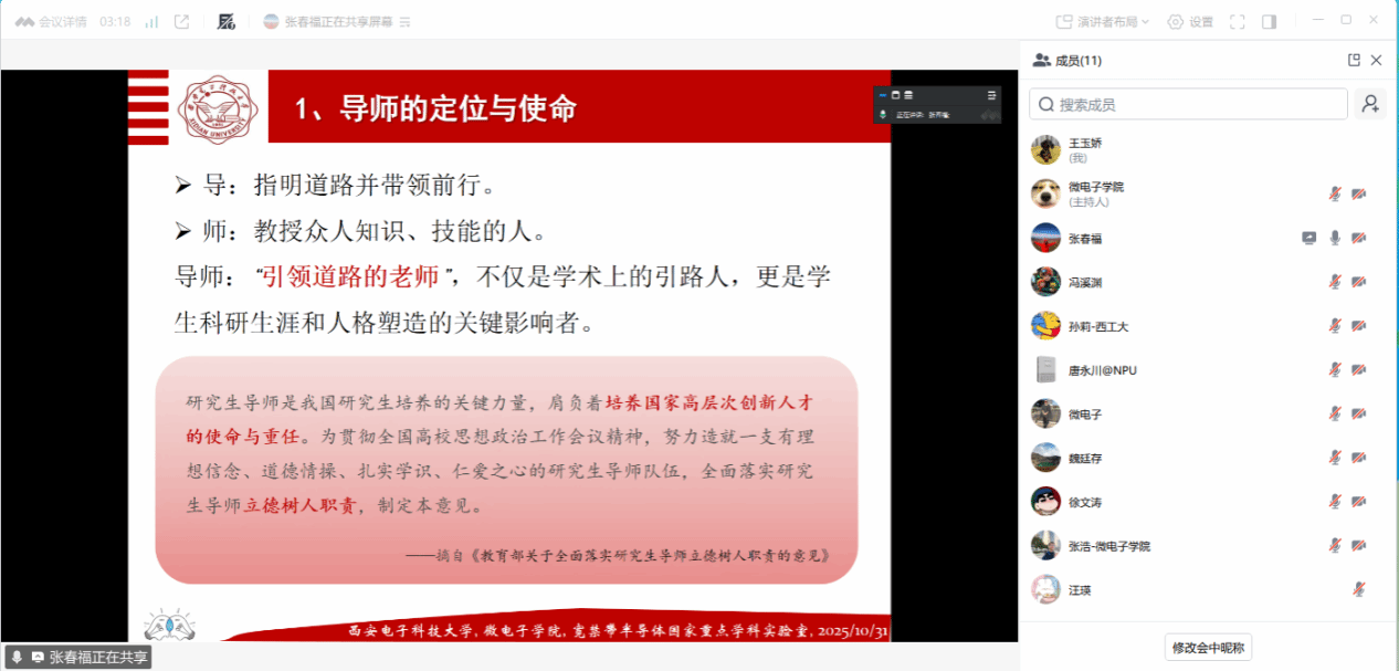 组织召开2025年导师培训会。会议采用线上线下相结合的方式进行,邀请西安电子科技大学色情直播网站